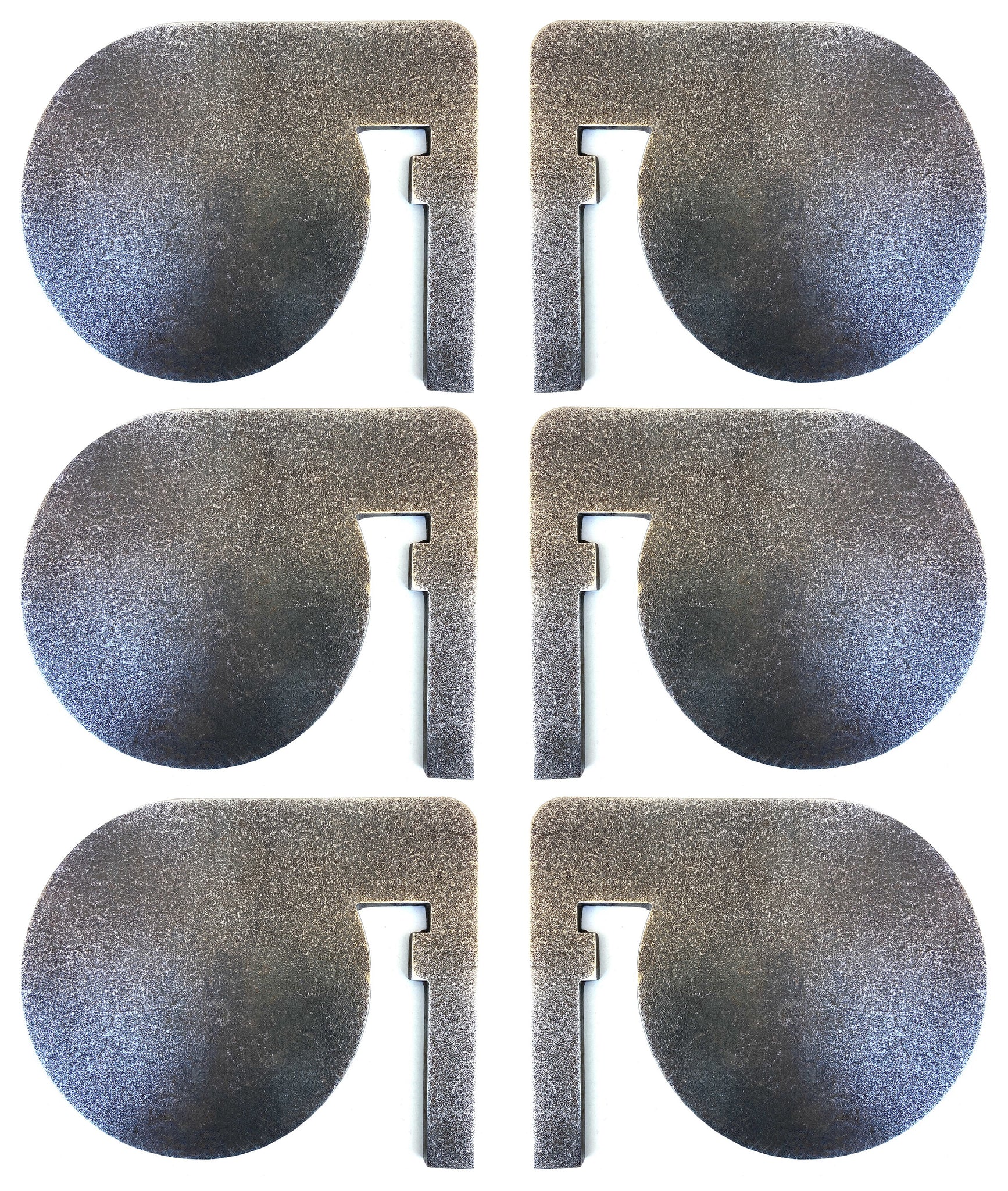 Set includes six (6) unpainted 6" x 1/4" mild steel dueling tree swinging paddles. Tree stand not included.